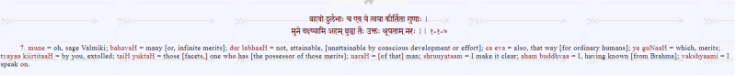 The Sangraha Ramayana follows the exact same sequence, with 7 Kandas, like the Valmiki Ramayana and contains 3190 shlokas in Sanskrit. It is completely in line with the explanations given by Sri Madhvacharya in the MBTN on many crucial incidents such as the Sita Agnipareeksha. The author in the beginning quotes both the Moola Ramayana and the Valmiki Ramayana (by virtue of a salutation to Sage Valmiki).