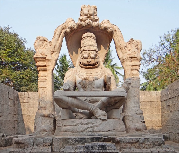 ….In 1528 was constructed one of the most curious and interesting monuments to be seen in the city. This is an enormous statue of the god Vishnu in his avatara as Narasimha, the man-lion. It was hewn out of a single boulder of granite….”