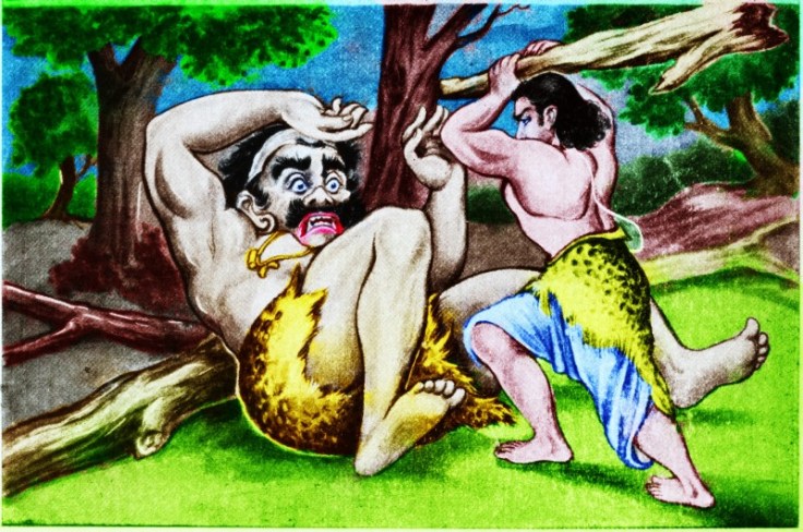 As bhima came close to finishing the meal, he let out a loud shout daring bakasura to come out. Hearing the thunder-like roar of bhima, bakasura rushed out of his cave. The sight of bhima finishing his meal, which he in fact was eagerly awaiting, infuriated him no end.